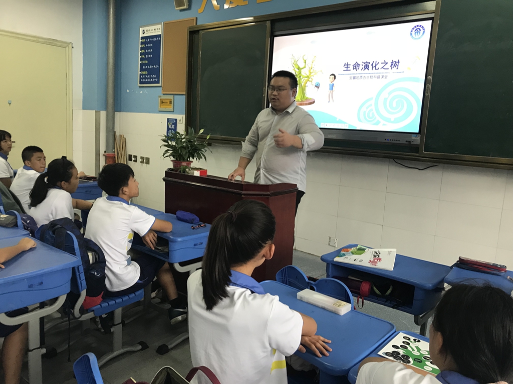9月17日下午,安徽省地质博物馆科普大篷车来到了五十中天鹅湖校区,为这里的同学们带来了一场别开生面的展览活动,同时也带来了一堂生动有趣的生命演化课程。