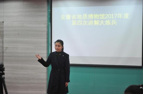 今年以来,我馆多次派讲解员参加各级各类讲解比赛,在2017年“中国故事——全国博物馆优秀讲解案例展示推荐活动”暨全省讲解员大赛中获一个三等奖和一个优秀奖;在全国科普讲解大赛,获1个优秀奖;安徽省首届国土资源科普讲解大赛中获一、二、三等奖各一个;第二届全国国土资源科普讲解大赛获一、二等奖各一个……这是我馆长期以来高度注重讲解员讲解业务水平的体现。定期开展讲解大练兵活动,增加了我馆科普宣教人员的知识储备,提高了业务技能,提升了讲解水平,为做好我馆日常接待、科普宣教工作打下了良好基础。