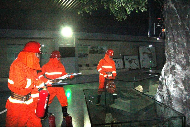 14:30,中控制室接到生命演化厅烟感报警,值班员立即通知内巡人员前往报警地点查看,内巡人员确认火警并示警,中控室值班员确认火警,迅速拨打119报警电话同时通知总指挥。总指挥接到报告后赶赴中控室指挥扑救及疏散,与此同时,合肥市蜀山区消防大队天鹅湖中队官兵也赶赴现场,组织对火灾进行扑救。针对“火情”,疏散组、灭火组、设备保障组、救护组、警戒组和标本清点组等在统一指挥下,按各自分工紧张有序地完成了任务,演练取得圆满成功。