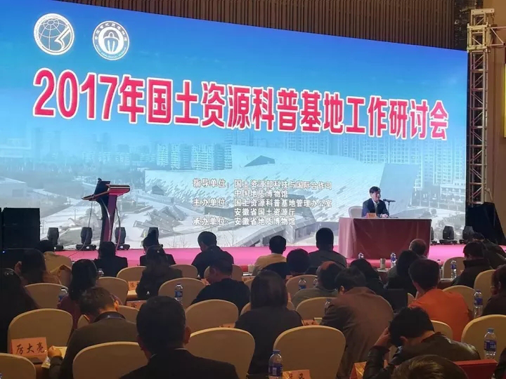 10月26日,2017年国土资源科普基地工作研讨会在合肥召开。国土资源部科技与国际合作司副司长高平,国土资源科普基地管理办公室主任、中国地质博物馆馆长贾跃明及副馆长刘树臣,科技部政策法规司调研员邱成利,安徽省国土资源厅厅长孙爱民与副巡视员高国忠,省科技厅、安徽省地质博物馆等相关负责人出席了此次研讨会,并对相关科普基地进行集中授牌。