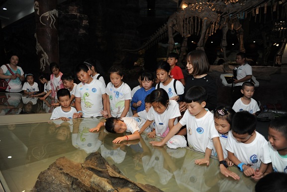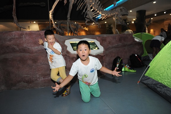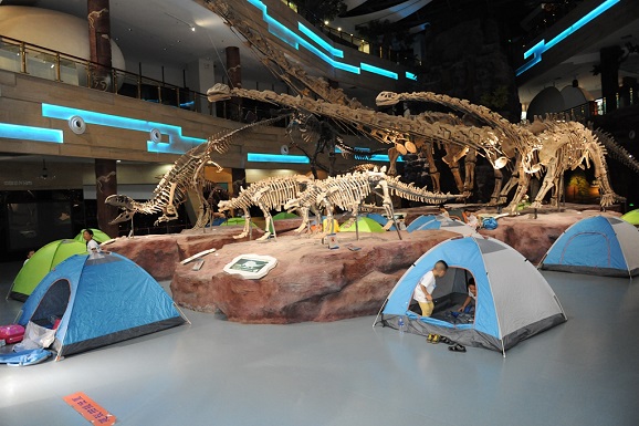 7月22日晚,安徽省地质博物馆的恐龙厅来了一帮小客人,他们看电影、搭帐篷,修复化石、制作浮雕,和恐龙们结伴而眠,度过了一个奇特的周末之夜。