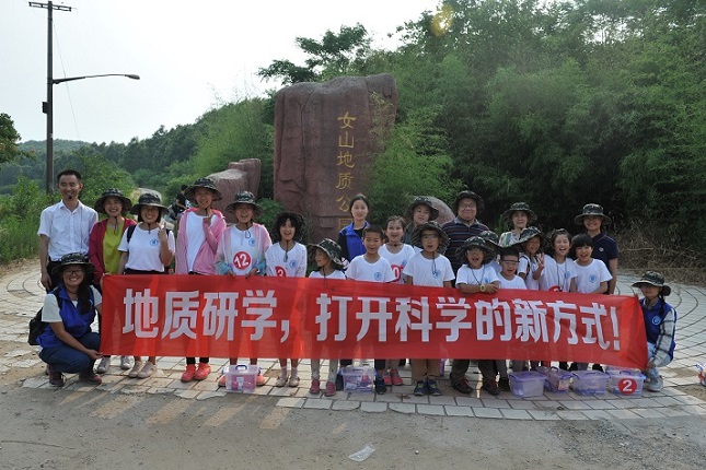 位于明光市的女山是安徽著名的古火山之一,其火山构造组合完整,特征典型,喷发物质类型丰富,且目前基本保持自然状态,未受人为破坏,可以说是安徽省内认识火山构造、研究地球内部结构的一个绝佳地点。孩子们全神贯注的听着科普老师介绍地学知识,还在火山湖边上挖捡了不少火山石。