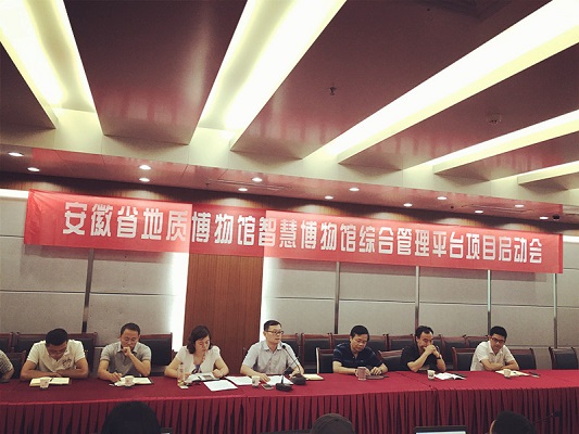 9月22日下午,我馆召开了安徽省地质博物馆智慧博物馆综合管理平台项目实施启动会。项目中标单位广州欧科信息技术股份有限公司董事长熊爱武及项目实施团队参加了此次会议,会议由许兴春副馆长主持,胡雪松馆长出席并总结发言。综合管理平台项目的实施,标志着我馆智慧博物馆建设正式全面启动。