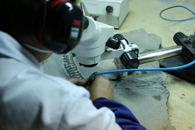 化石修复有些只需要几天,有些需要几个月,甚至更长。日复一日的修复工作考验着修复师的细心、耐心和责任心。