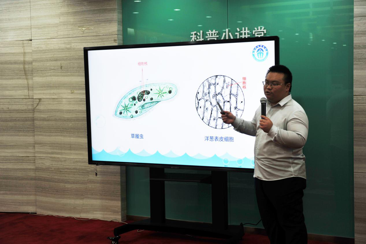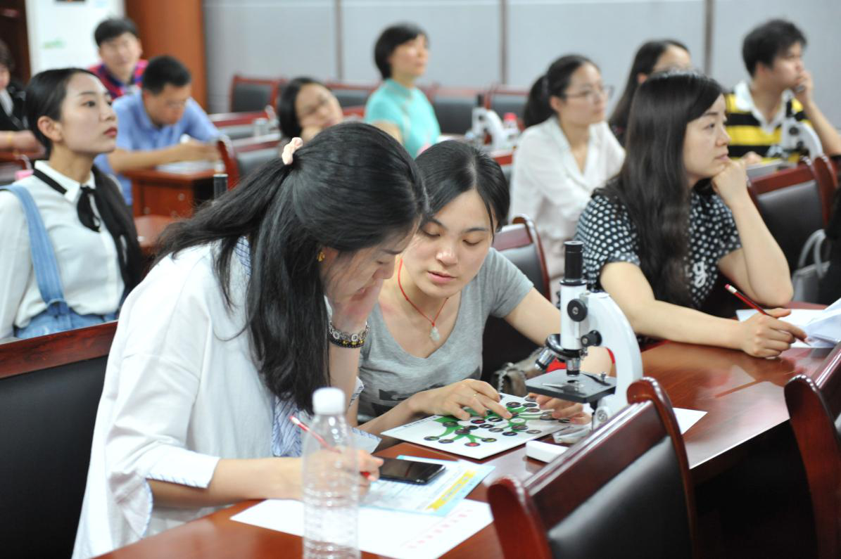 在接下来的“巢湖龙说”微视频课程观摩中,趣味横生的科普短片以动画的形式详细生动地介绍了巢湖鱼龙的特征和习性。生命演化树的位置探究和显微镜观察细胞结构的环节,让在场的同行们感到形式新颖、别开生面,纷纷迫不及待“上手”操作。最后,金迪副主任分享了我馆品牌科普活动的孵化与培养经验。