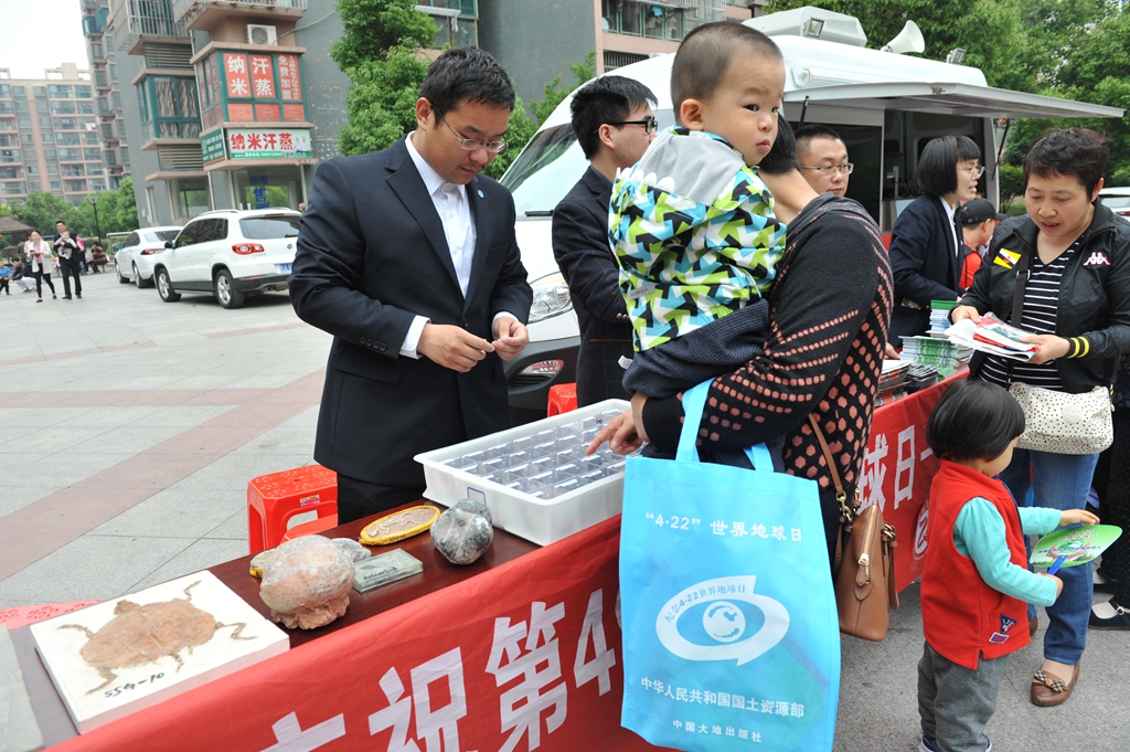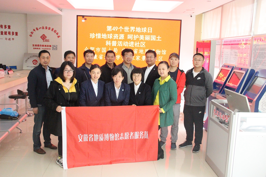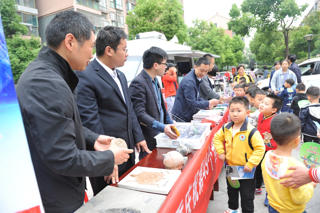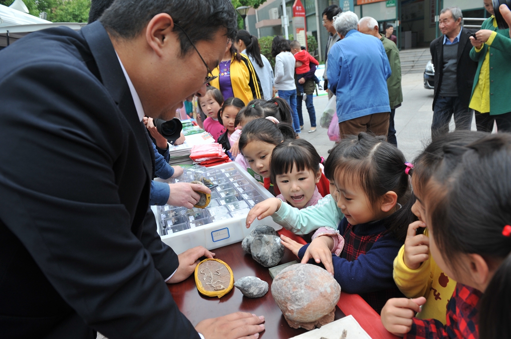 我馆科普工作者与合肥市国土资源局的工作人员为社区居民介绍地球日的由来、介绍各类古生物化石标本和矿物岩石标本,科普地质灾害避险知识,还有来自安徽省地质学会的专家为社区居民免费鉴定珠宝,半天下来,大家俨然已经成为社区红人。如果你也想让安徽省地质博物馆的科普大篷车小分队造访您所在的小区,可以联系该片的社区工作人员来致电0551——63548008哦!(9:00——16:00,周一除外)