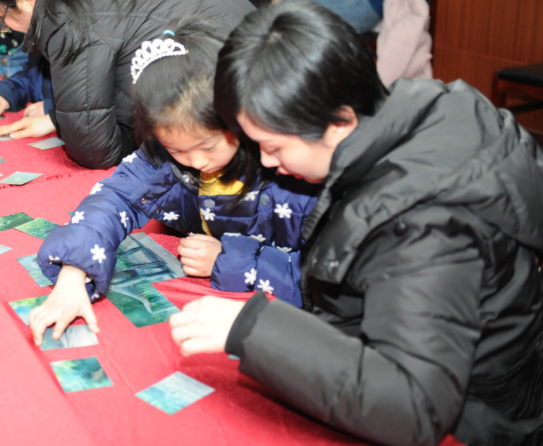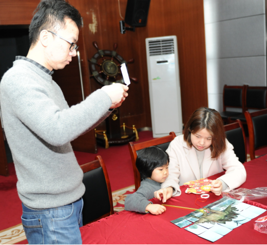 在参观完恐龙厅后,老师将精心准备的恐龙拼图发给大家,在爸爸妈妈的协助下一张张生动的图案很快呈现出来,在制作灯笼环节,老师讲解制作步骤,进行现场指导。孩子们做的不亦乐乎,家长们也热情参与其中,数个斑斓多彩的灯笼一会儿就成型了。