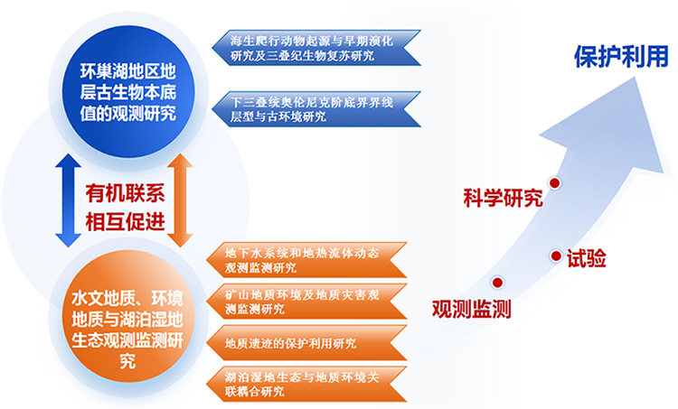 基于环巢湖地区丰富的地层古生物、地质环境,区域和学科特色以及面临的问题,巢湖野外站将持续开展环巢湖地区地层古生物本底值的观测研究,相关水文地质、环境地质与湖泊湿地生态观测监测研究以及基于地层古生物等地质遗迹保护的关键地质环境要素观测监测研究。